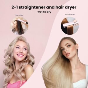 2-in-1 Hair Straightener and Blow Dryer, Professional Hair Styling Tool, Pink