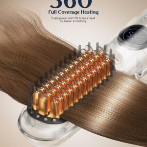 Hair Straightener Brush – Portable, Fast-Heating Styling Tool with Protective Dust Cover – 3 Temperature Settings, 300 Million Negative Ions for Frizz-Free Styling On-The-Go & Travel
